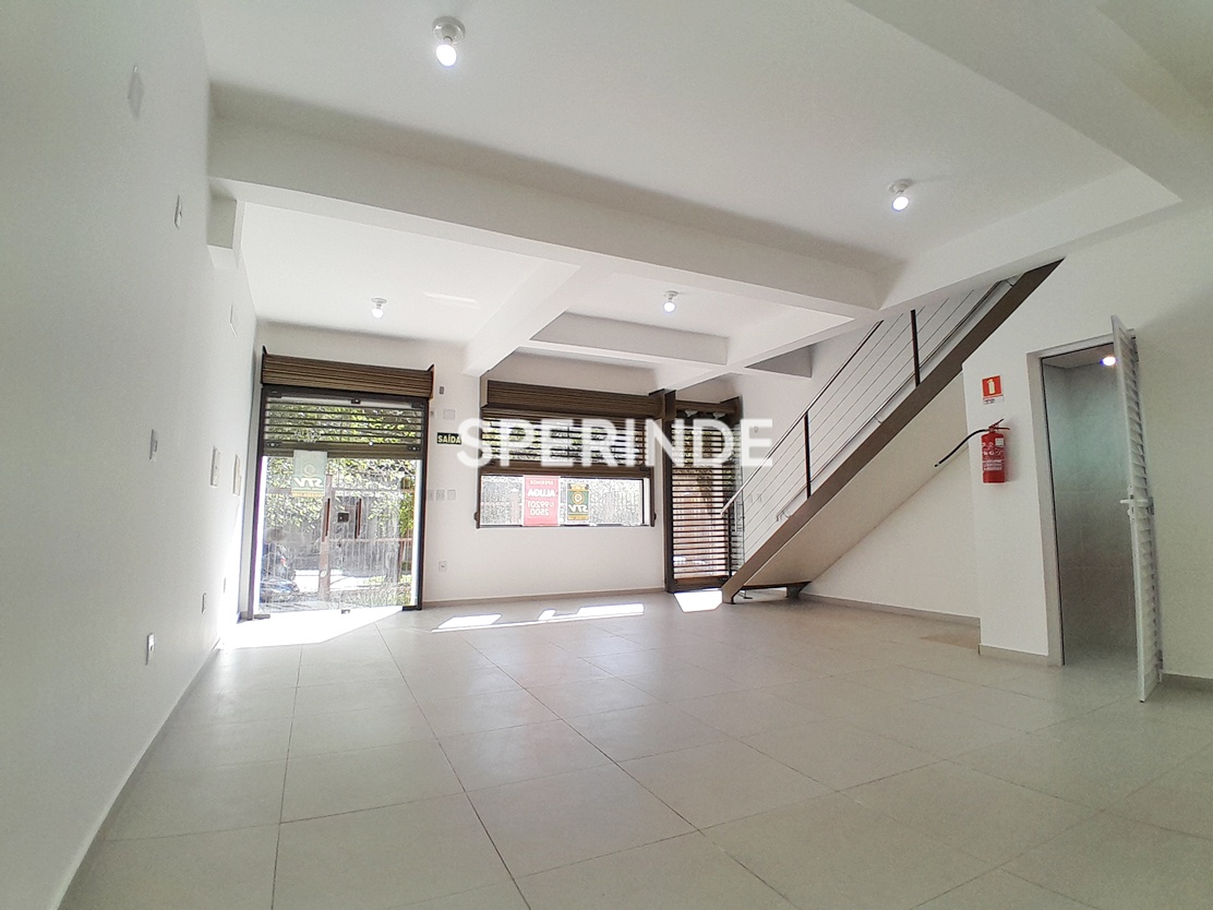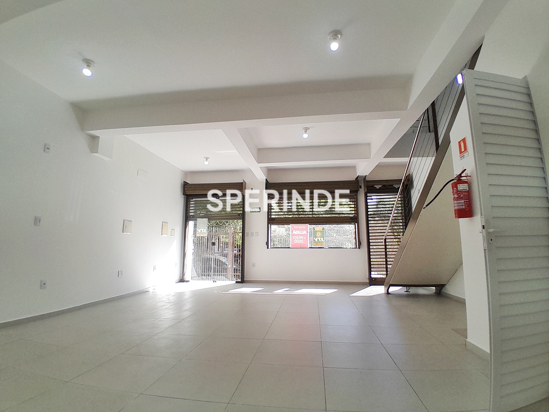 Loja comercial no bairro Santana, em Porto Alegre. Com 45,14m² na parte superior e 40,32m² na parte inferior. O imóvel é composto por dois pisos, sendo o pavimento térreo com loja ampla, banheiro social e duas entradas independentes, equipadas com cortinas de ferro e portas de vidro. Possui piso em cerâmica em todos os ambientes.