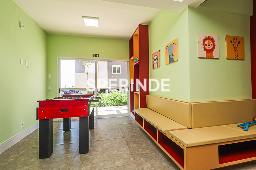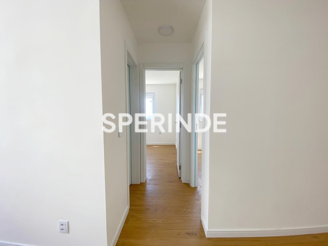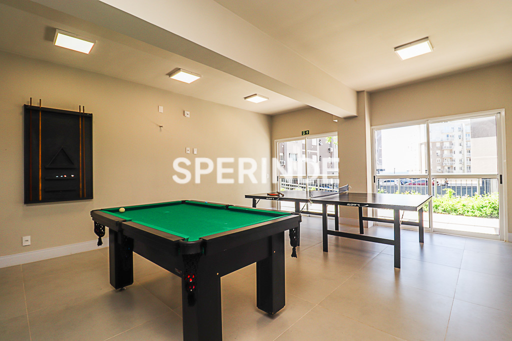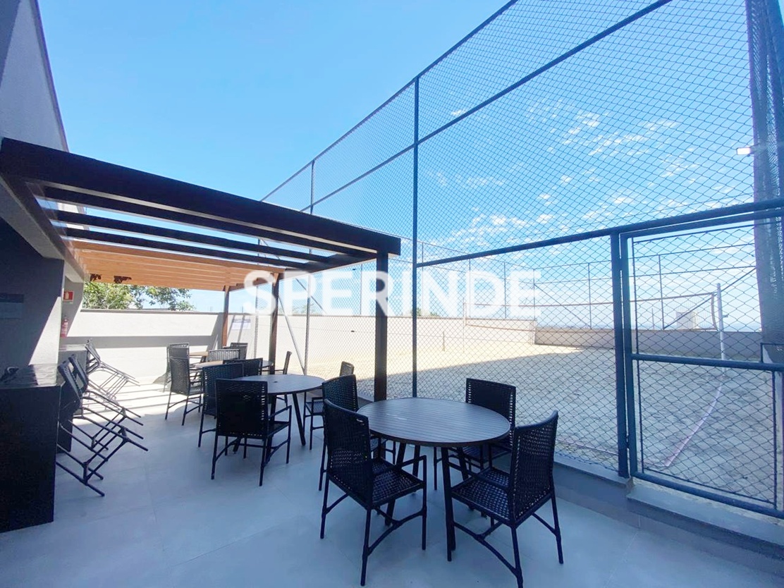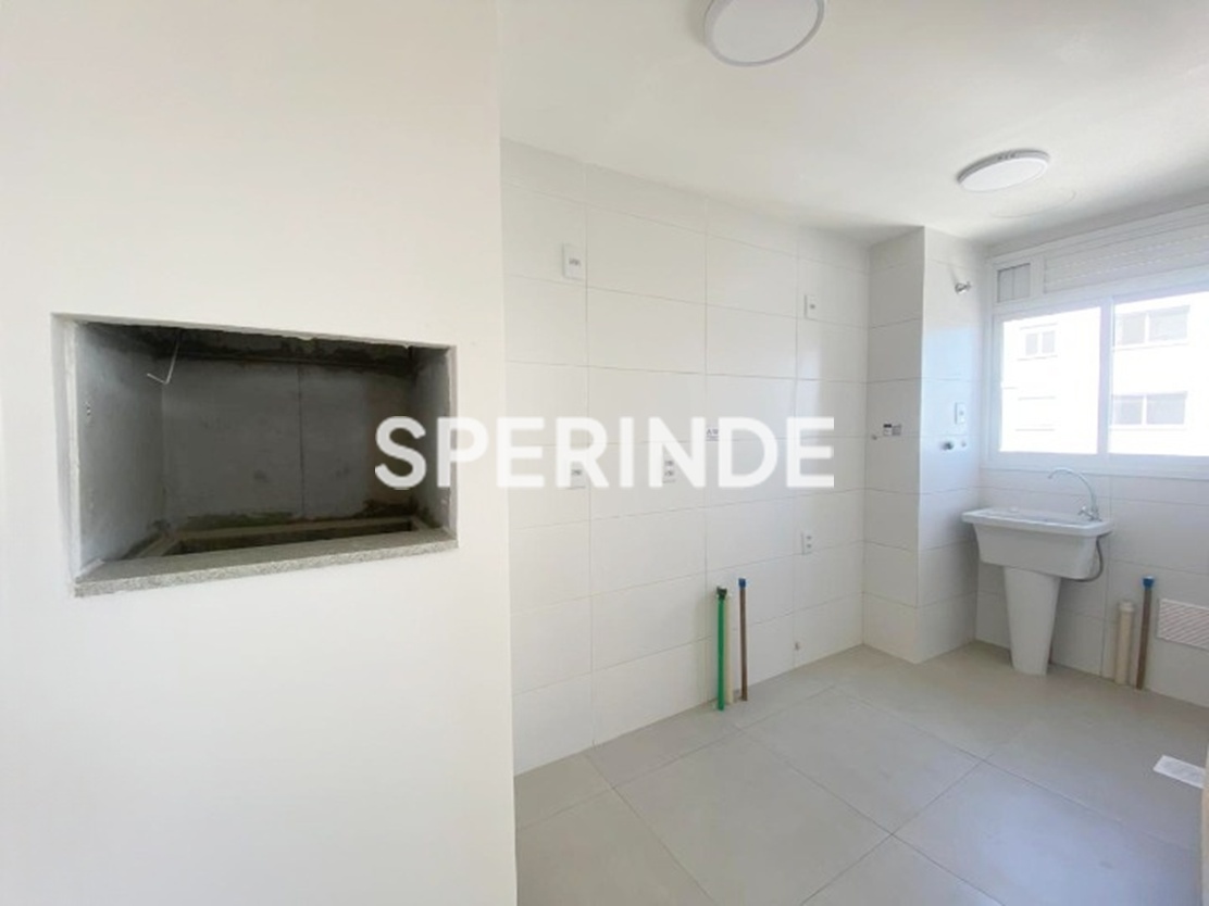 Apartamento com 59m² de área privativa, composto por living com dois ambientes, banheiro social, cozinha com churrasqueira e área de serviço integrada. O imóvel é lateral, bem iluminado, com piso laminado e porcelanato, oferecendo boa distribuição dos espaços e funcionalidade no dia a dia.