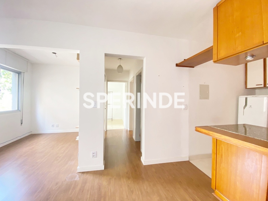 Apartamento para alugar no bairro MontSerrat, com 64m² de área privativa, composto por 2 quartos, sendo um com ar-condicionado e outro com ventilador de teto. O living possui dois ambientes, equipado com split e painel. Banheiro social com box. Cozinha americana com armários sob medida, geladeira e micro-ondas. Área de serviço com tanque, secadora de roupas e estante. Piso laminado e cerâmico, com ótima orientação solar.