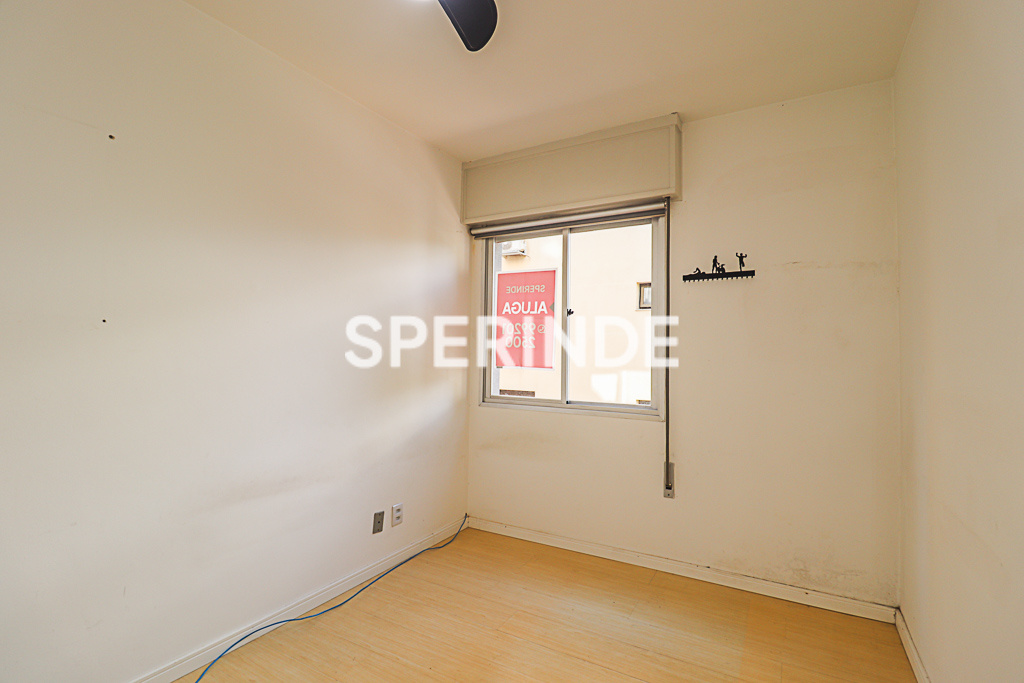 Apartamento para alugar no bairro MontSerrat, com 64m² de área privativa, composto por 2 quartos, sendo um com ar-condicionado e outro com ventilador de teto. O living possui dois ambientes, equipado com split e painel. Banheiro social com box. Cozinha americana com armários sob medida, geladeira e micro-ondas. Área de serviço com tanque, secadora de roupas e estante. Piso laminado e cerâmico, com ótima orientação solar.