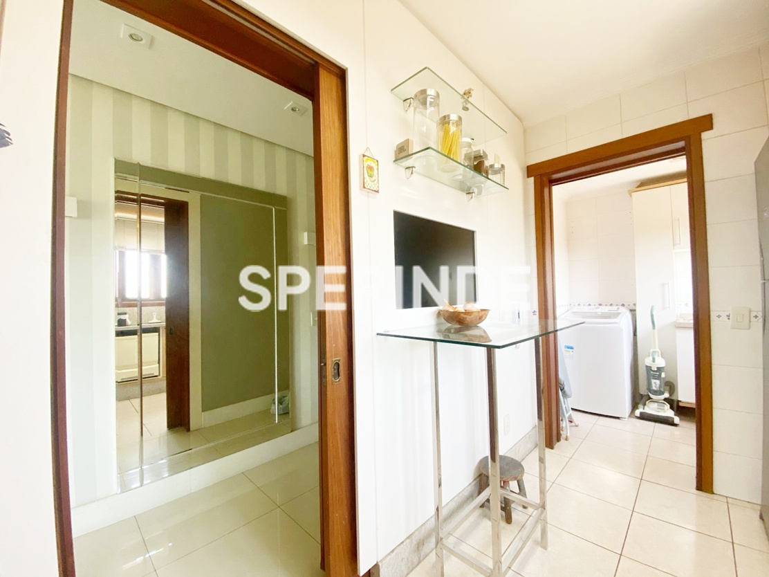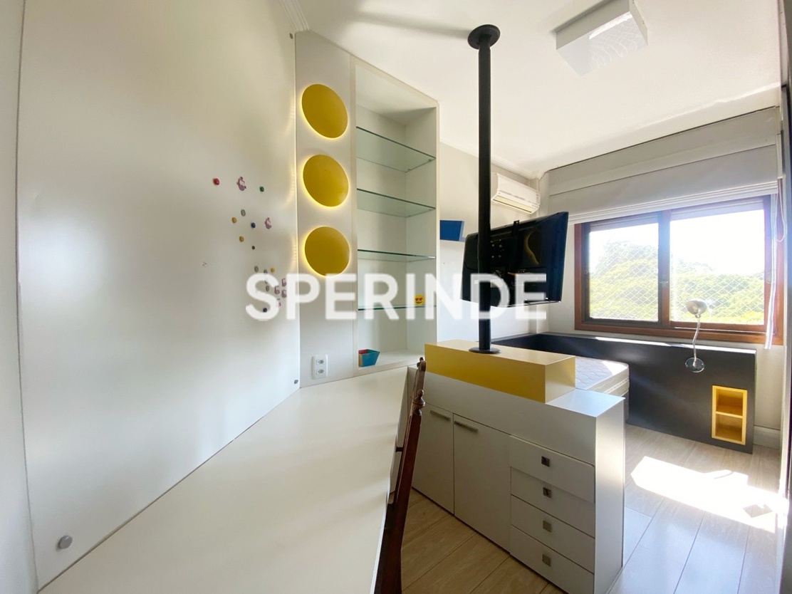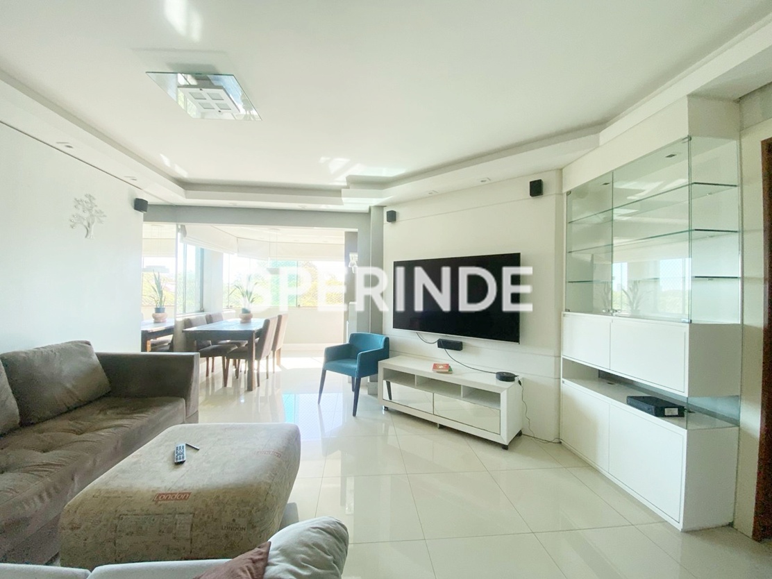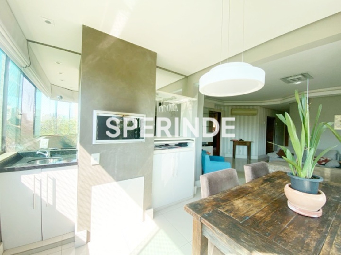 Apartamento completamente mobiliado com 125m² de área total, composto por 3 quartos, sendo 1 suíte, living para dois ambientes com churrasqueira e pia de apoio, cozinha planejada e equipada e área de serviço separada. O terceiro quarto está configurado como gabinete. Possui marcenaria sob medida, mobiliário completo, banheiro com ventilação natural e espera para hidromassagem, além de 2 vagas de garagem individuais, cobertas, e depósito.