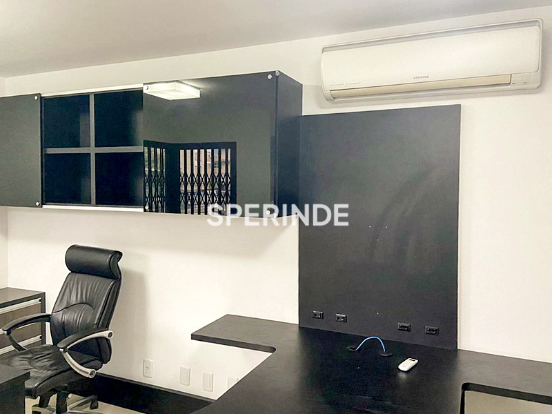 A sala proporciona espaço confortável para organização de estações de trabalho, recepção e atendimento, sendo uma excelente opção para consultórios, escritórios ou atividades administrativas.