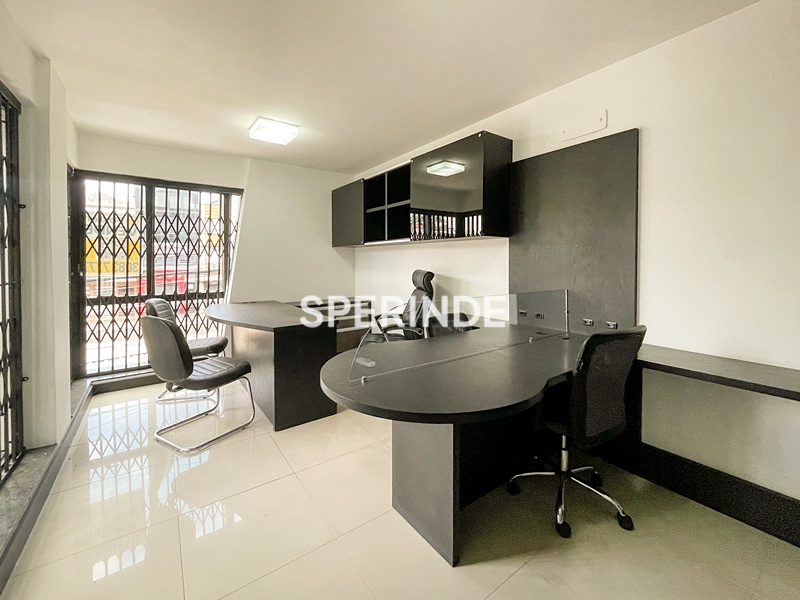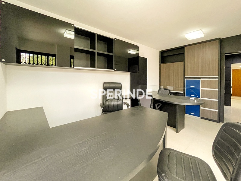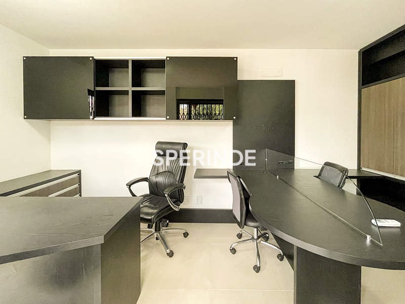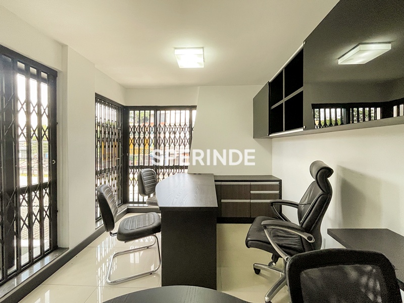 A sala proporciona espaço confortável para organização de estações de trabalho, recepção e atendimento, sendo uma excelente opção para consultórios, escritórios ou atividades administrativas.