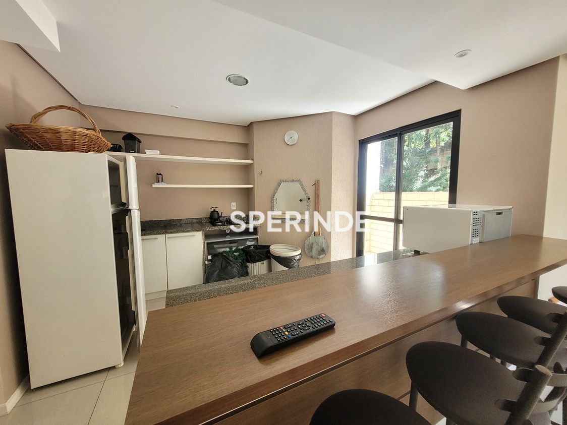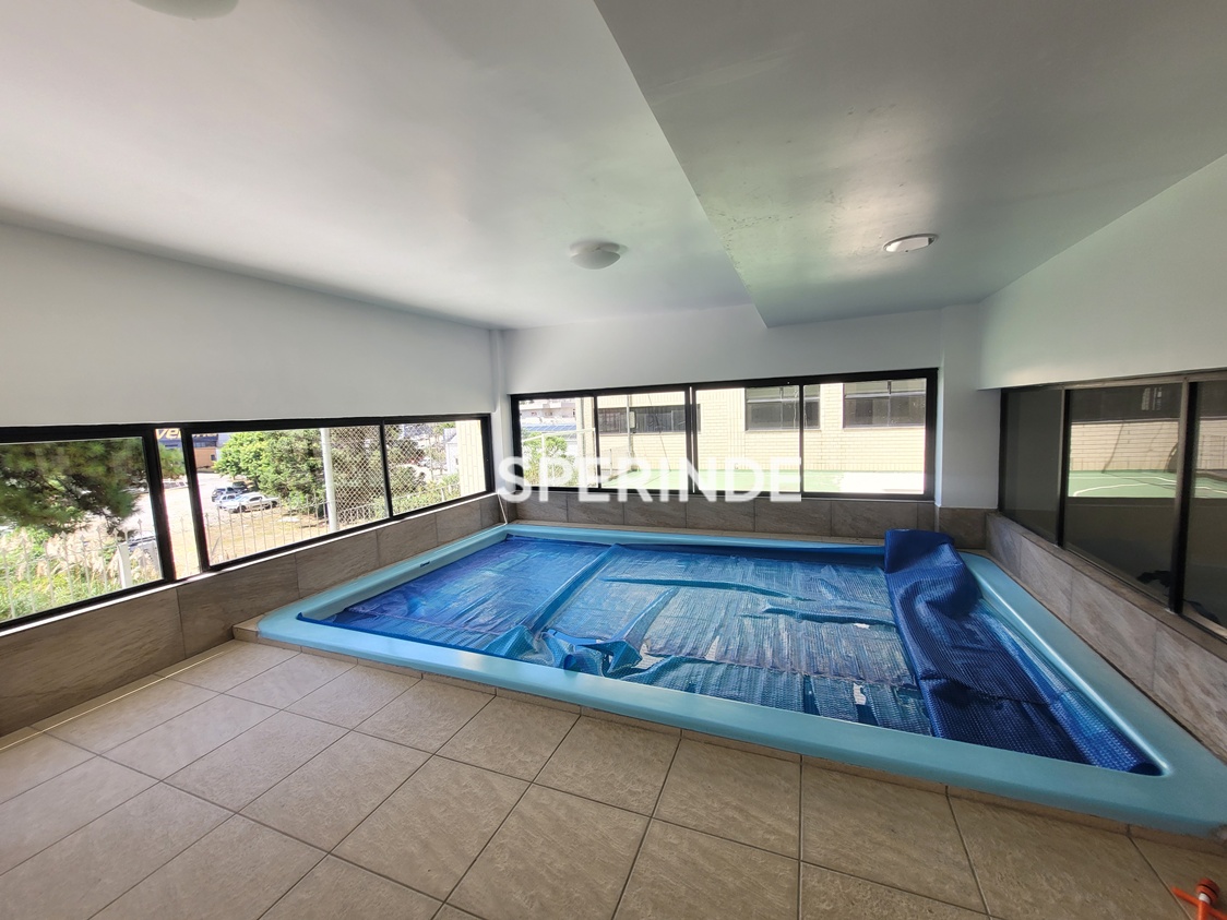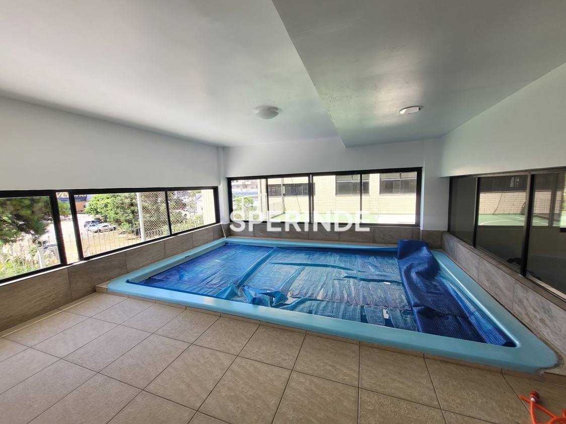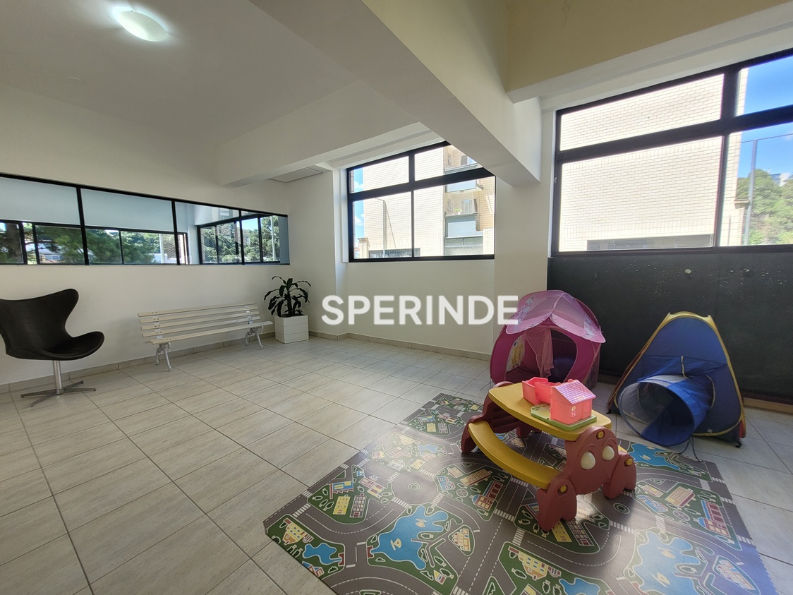 O condomínio oferece portaria 24 horas, zelador, segurança, elevador e sistema de gás central. A infraestrutura inclui quadra de esportes, piscina, salão de festas, brinquedoteca, quiosque com churrasqueira, espaço fitness, playground e estacionamento para visitantes.