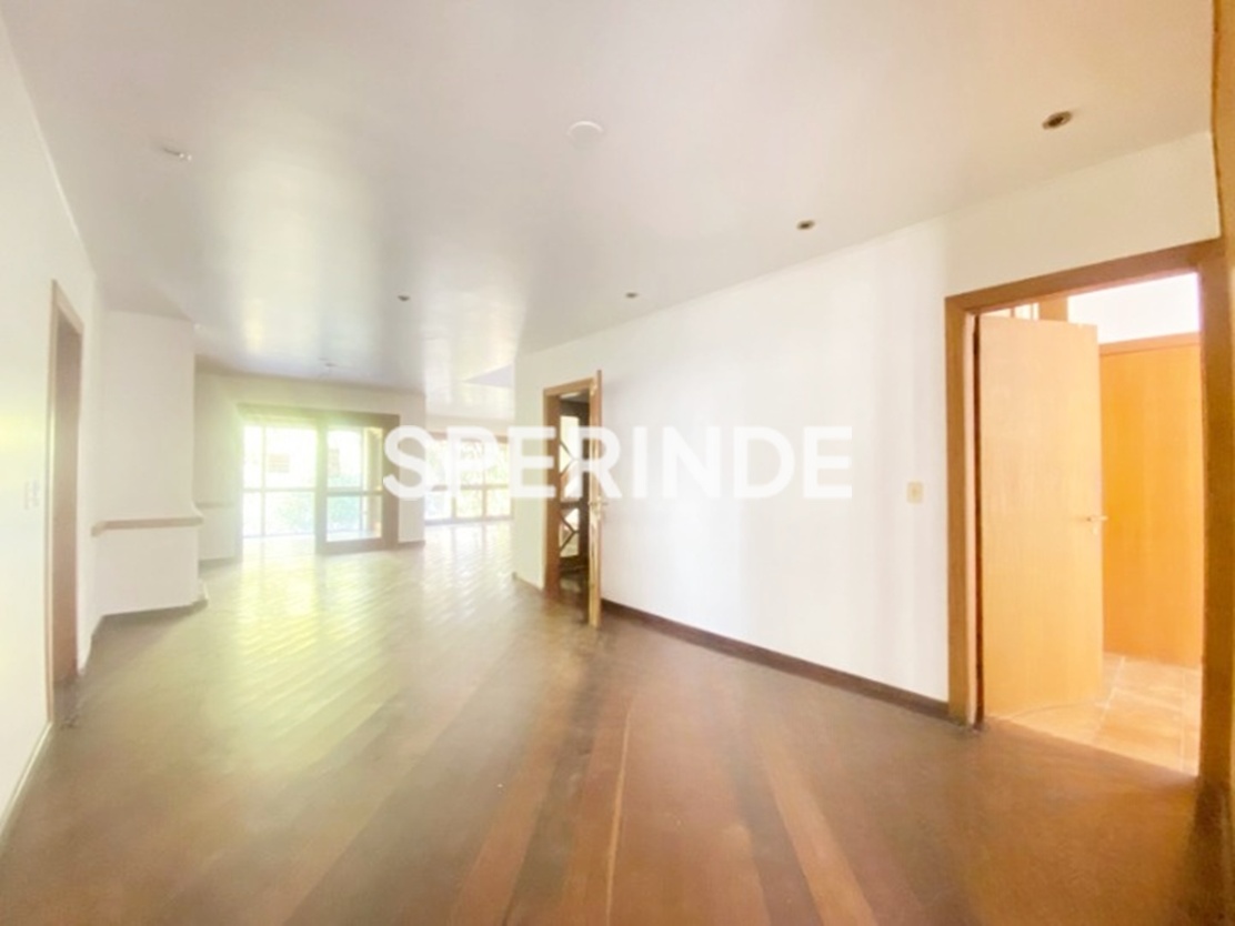 Cobertura para alugar no bairro Mont Serrat em Porto Alegre com aproximadamente 400m² de área privativa, composta por 4 quartos, sendo 1 suíte, e 3 vagas de garagem. O primeiro pavimento conta com hall de entrada com lavabo, living amplo para quatro ambientes com lareira e sacada, cozinha com copa, despensa, área de serviço separada e dependência de funcionária com banheiro. Na área íntima, os dormitórios possuem armários embutidos e há banheiro auxiliar que atende os demais quartos. O imóvel dispõe ainda de ar-condicionado e ambientes amplos.