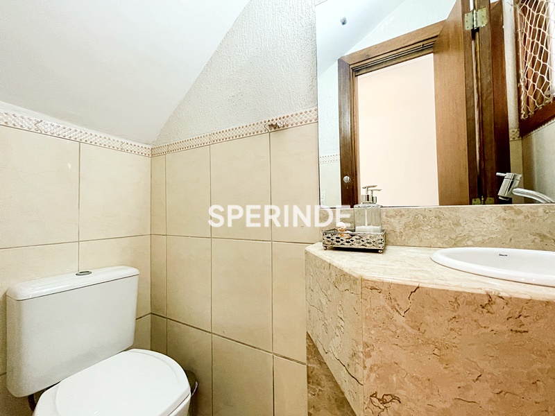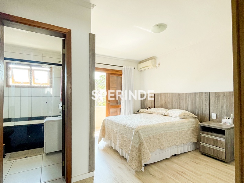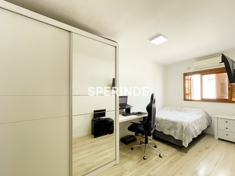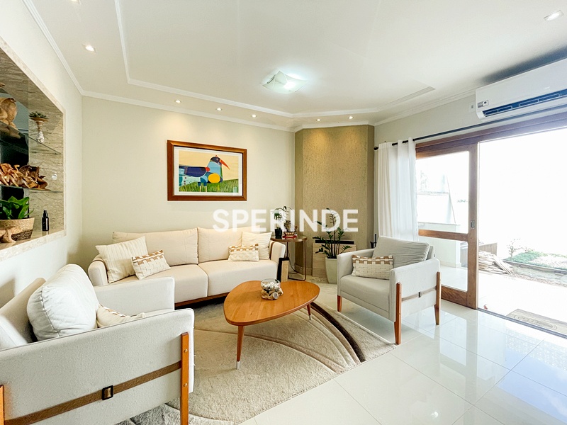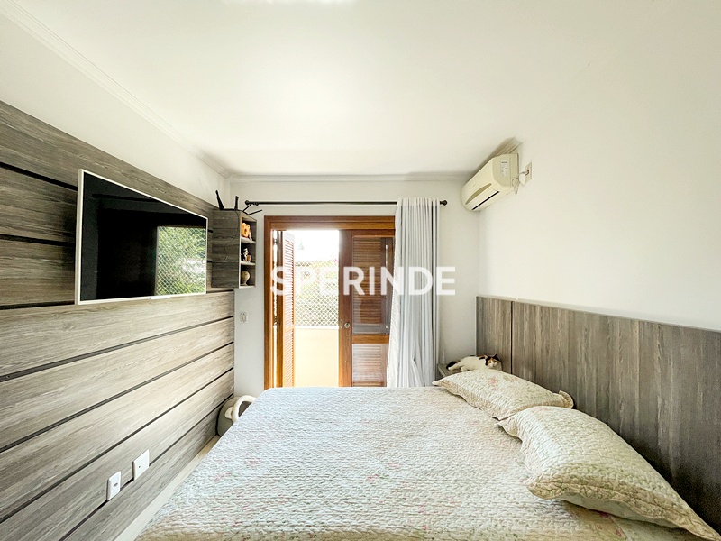 Casa para alugar no bairro Ipanema, na zona sul de Porto Alegre, com 223m² de área privativa. O imóvel é mobiliado e conta com três dormitórios, sendo duas suítes, além de sacada, living para dois ambientes com lareira e ar-condicionado split, lavabo e piso em porcelanato.