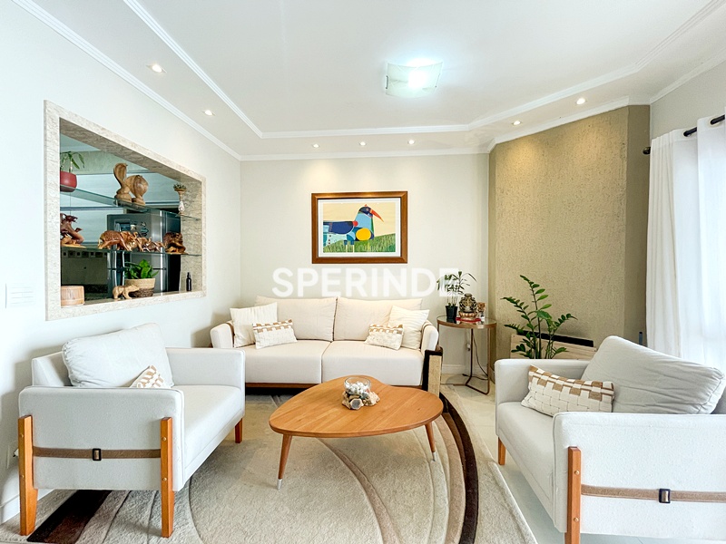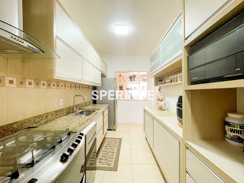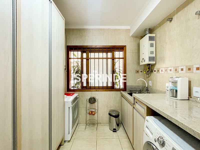 A cozinha americana é totalmente equipada, com armários sob medida, geladeira, fogão, micro-ondas e máquina de lavar louças. A área de serviço dispõe de máquina lava e seca, oferecendo mais praticidade no dia a dia. O imóvel possui ainda sistema de energia solar, proporcionando mais eficiência e economia.