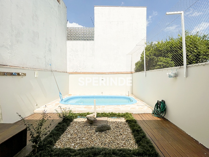 Na área externa, conta com pátio com piscina, deck e churrasqueira, ideal para momentos de lazer e convivência. Dispõe também de duas vagas de garagem cobertas.