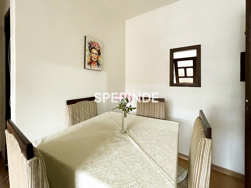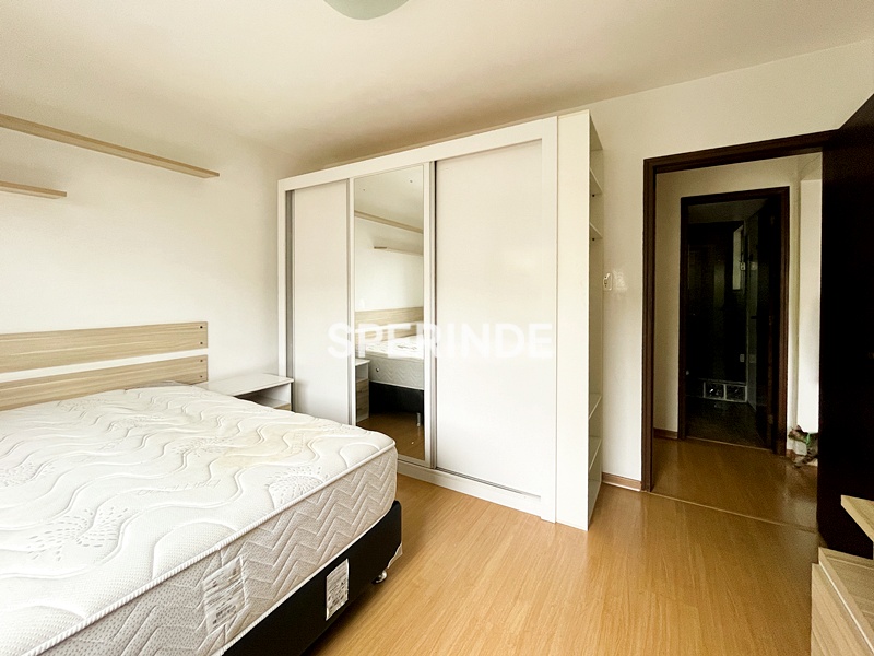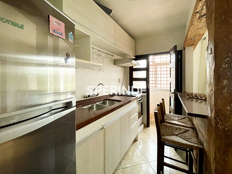 A cozinha dispõe de armários, fogão e geladeira, além de ar-condicionado e chuveiro a gás, proporcionando mais conforto aos moradores. O apartamento conta ainda com uma vaga de garagem privativa e aceita pet.