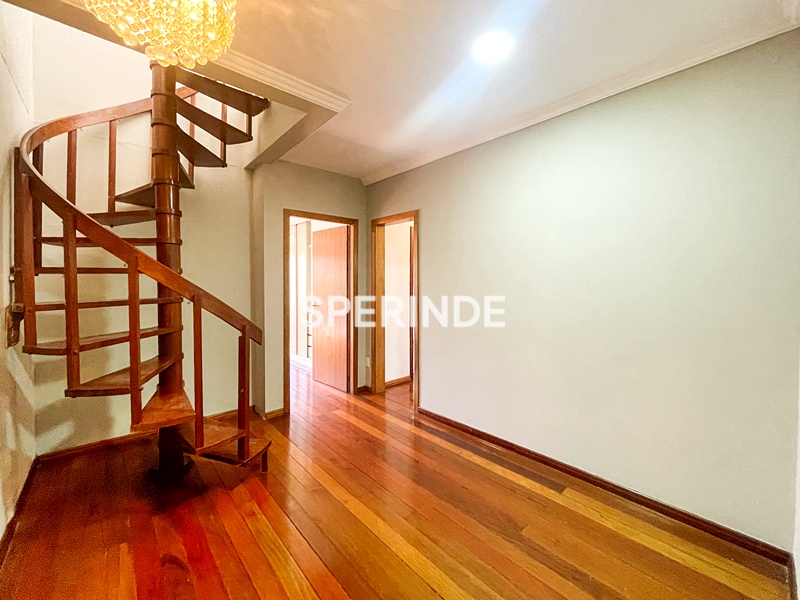 No pavimento inferior, o imóvel conta com quatro dormitórios, sendo uma suíte com closet, living com sacada integrada, cozinha, área de serviço e quatro banheiros sociais, proporcionando praticidade e ótima distribuição dos ambientes.