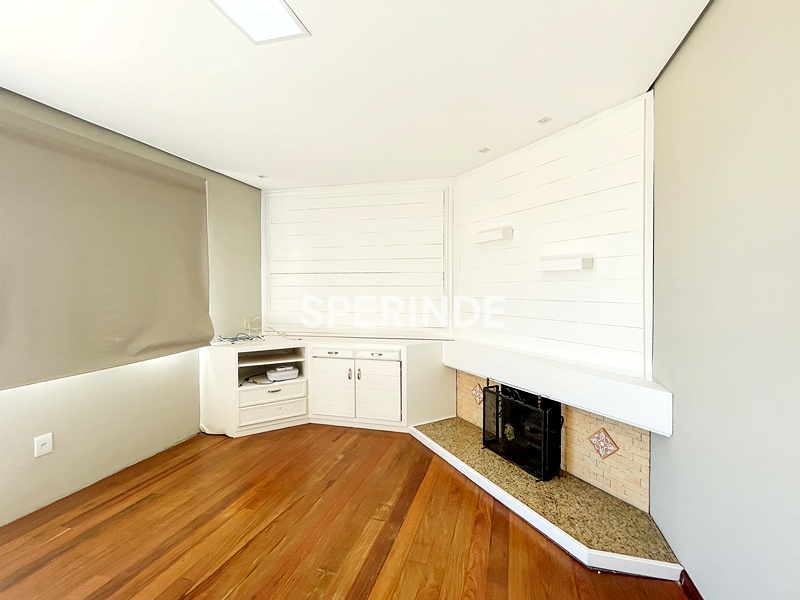 Na parte superior, dispõe de amplo living com lareira, espaço gourmet com churrasqueira e terraço com aproximadamente 45m², perfeito para momentos de lazer e convivência.