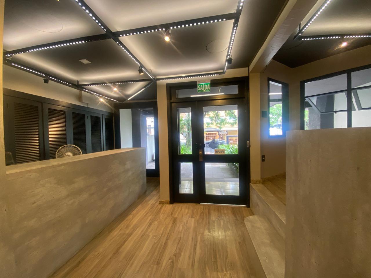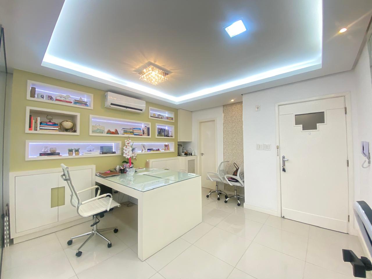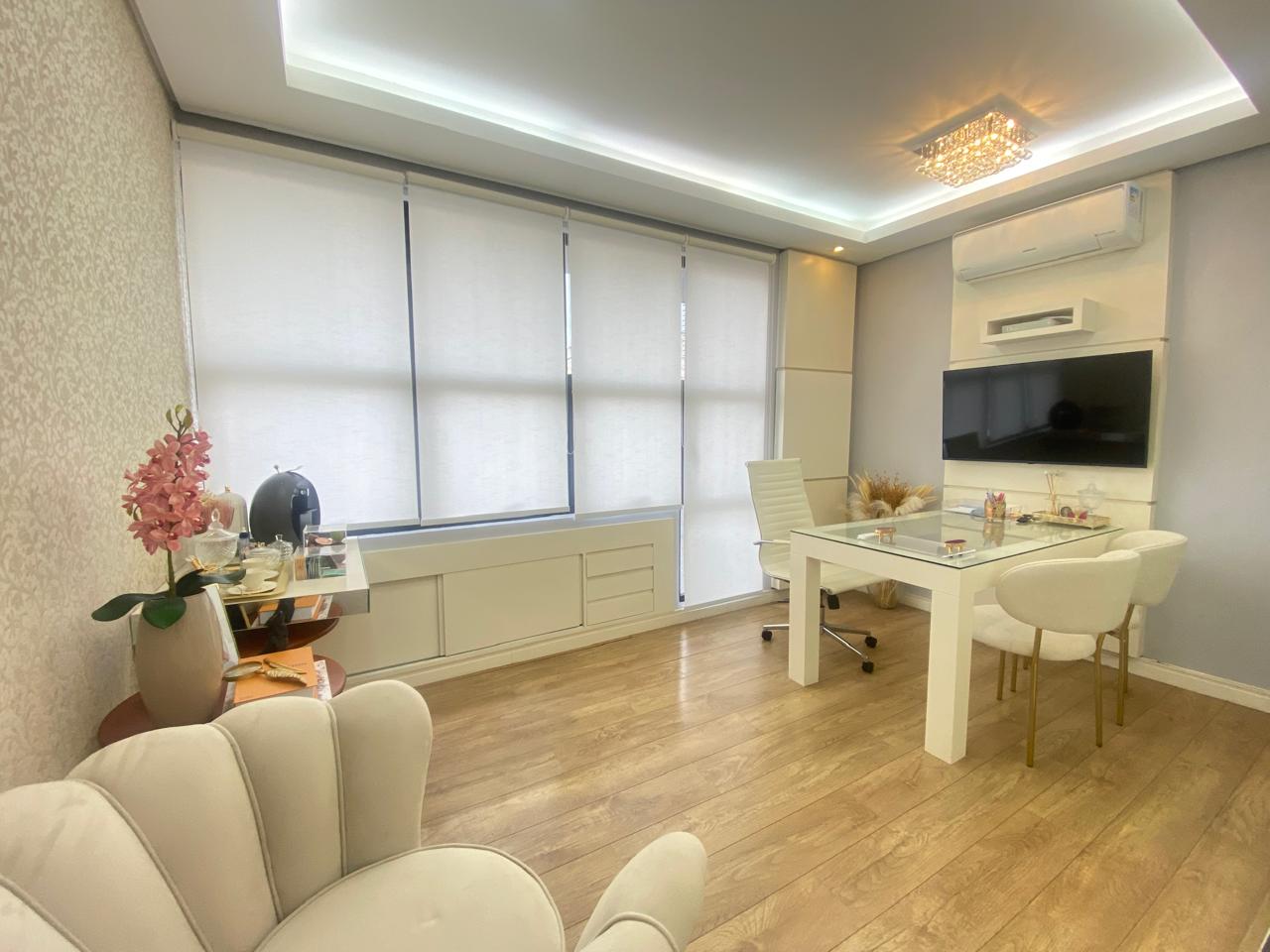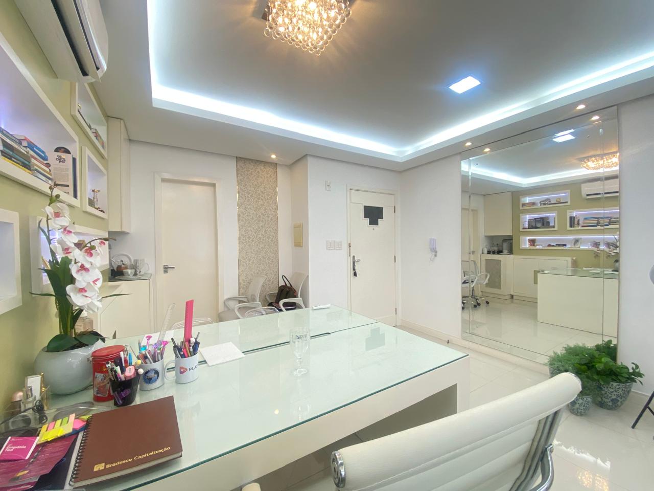Sala comercial mobiliada, com ambientes bem distribuídos e prontos para uso, divididos em dois espaços independentes por parede de vidro. O primeiro ambiente conta com mesa para 4 pessoas, armários planejados, ar-condicionado split, espelho amplo, piso em porcelanato, lustre e estrutura para frigobar e micro-ondas. O segundo ambiente dispõe de mesa para 2 pessoas, armários planejados, ar-condicionado split, painel para TV, cortinas tipo rolo, mesa de apoio e piso laminado. Possui banheiro completo e depósito privativo, agregando praticidade à rotina profissional. Localizada na Rua no bairro Mont Serrat, região com fácil acesso a serviços, comércio e deslocamento pela cidade.