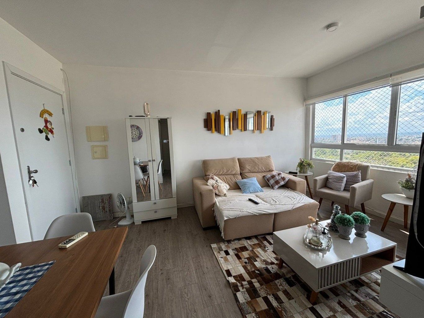 Apartamento com 48,77m² de área privativa, o imóvel conta com 2 dormitórios, 1 banheiro e 1 vaga de garagem escriturada, chuveiro e torneiras com aquecimento a gás, imóvel semimobiliado e tenha conforto e segurança com janelas grandes e telados.